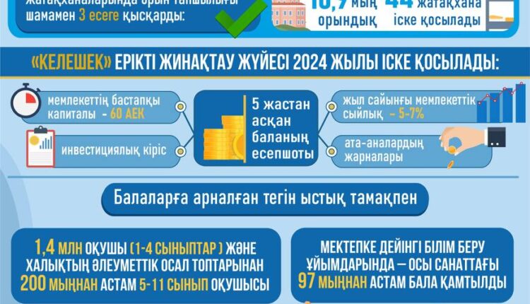 -Биыл аз қамтылған отбасылар мектеп киімдері мен кеңсе тауарларын өз бетінше сатып алу үшін әр балаға кемінде 40 мың теңге алды. Барлығы 463 мың бала қамтылып, 19 млрд теңге бюджет қаражаты жұмсалды.
