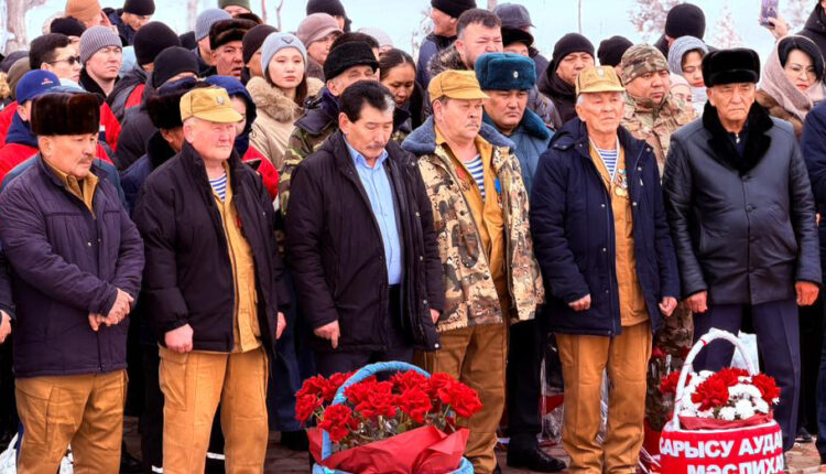 Жиналғандар майдан даласында ерлікпен қаза тапқандарды бір минут үнсіздікпен еске алып, ескерткішке гүл шоқтарын қойып, тағзым етті.